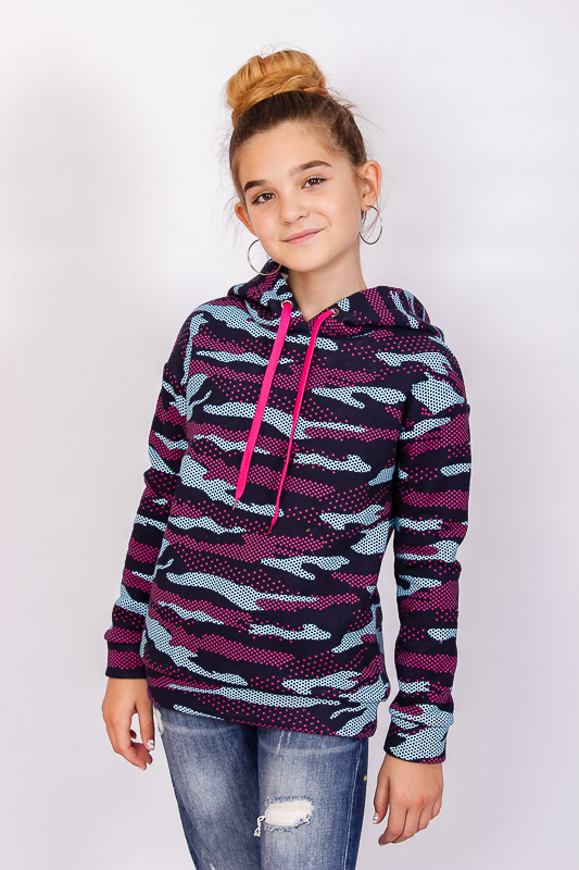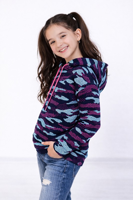 Юні прихильниці практичного одягу вільного крою по достоїнству оцінять худі української торгової марки «Трикотажний Край». У перекладі з англійської худі - це капюшон, тому нескладно здогадатися, що саме цей елемент виконує ключову функцію, будучи не просто декоративною, а цілком практичною деталлю. Капюшон відмінно захищає від холоду і вітру. Худі для дівчинки (підліткове) характеризується відмінною якістю пошиття і простотою дизайну. У виробу є: капюшон та манжети на рукавах і по нижньому краю. Воно чудово поєднується з джинсами і штанами різного крою. Виріб виготовлено з високоякісного бавовняного полотна трьохнитка - матеріал щільний і м'який на дотик, має гладку поверхню з лицьового боку і густе начісування з вивороту. Одяг з нього дуже теплиий, добре тримає форму, легко переться і має високу зносостійкість. Щільний, але досить м'який матеріал характеризується хорошим повітрообміном і приємними тактильними властивостями.