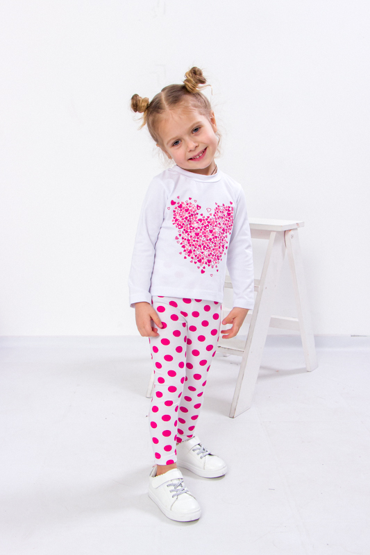 Комплект для дівчинки з набивної фулікри, що складається з кофти з довгим рукавом і штанів, — це комфортний, практичний і водночас милий варіант для повсякденного носіння у прохолодну пору року або для дому. Завдяки натуральному складу тканини та зручному крою цей одяг забезпечує максимальний комфорт дитині протягом усього дня.