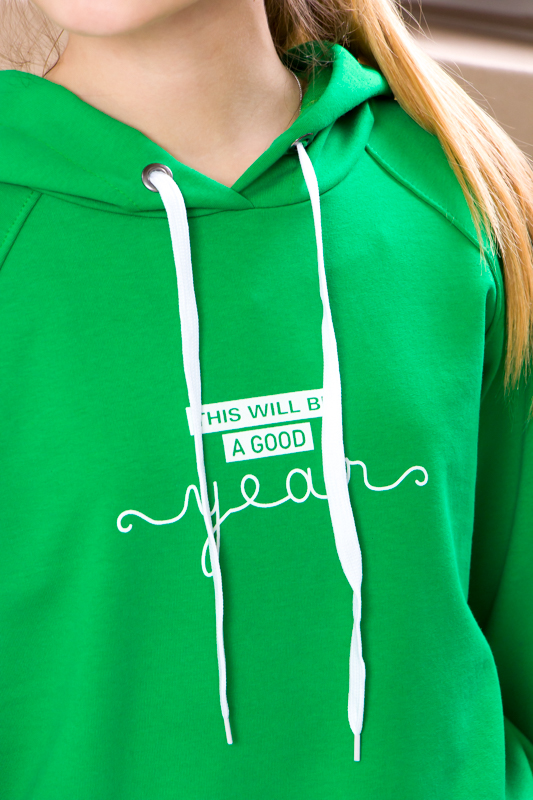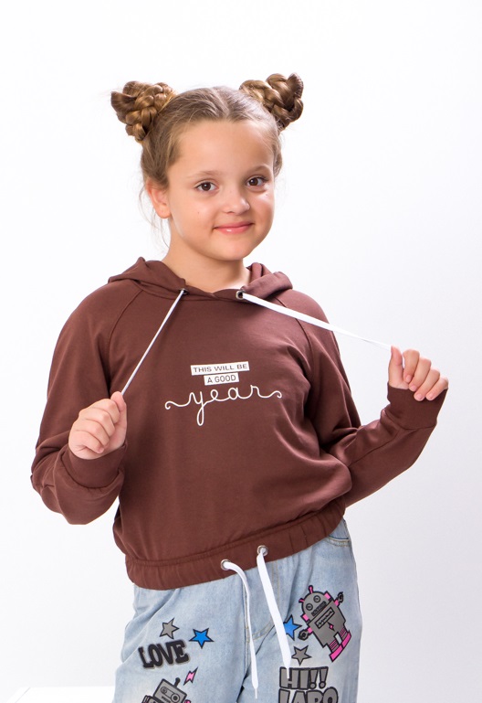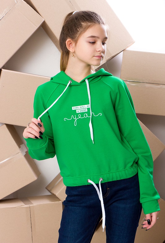 Одяг, розроблений фахівцями бренду "Трикотажний Край" займає гідне місце в дитячому гардеробі, оскільки він зручний, якісно виготовлений, а також молодіжний. Ці вироби радують ніжними тактильними властивостями, презентабельністю і акуратним пошиттям. Вони скроєні таким чином, щоб дарувати максимальний комфорт і підкреслювати почуття стилю дитини. Джемпер з капюшоном для дівчинки, по переду декорований принтом - написом, стане фешенебельним і корисним придбанням для дівчинки. Нижній край такого предмету одягу оснащений манжетою, яка регулює його ширину. Модель на 70% складається з повітропроникних, гігроскопічних і гіпоалергенних бавовняних волокон, які доповнені нитками еластану. Такий матеріал делікатно впливає на шкірний покрив, тому дарує затишок при носінні.