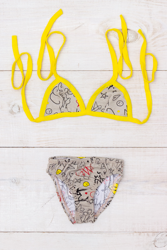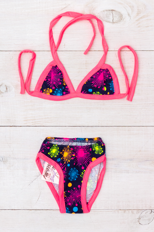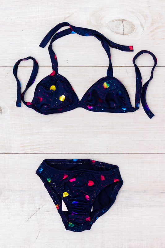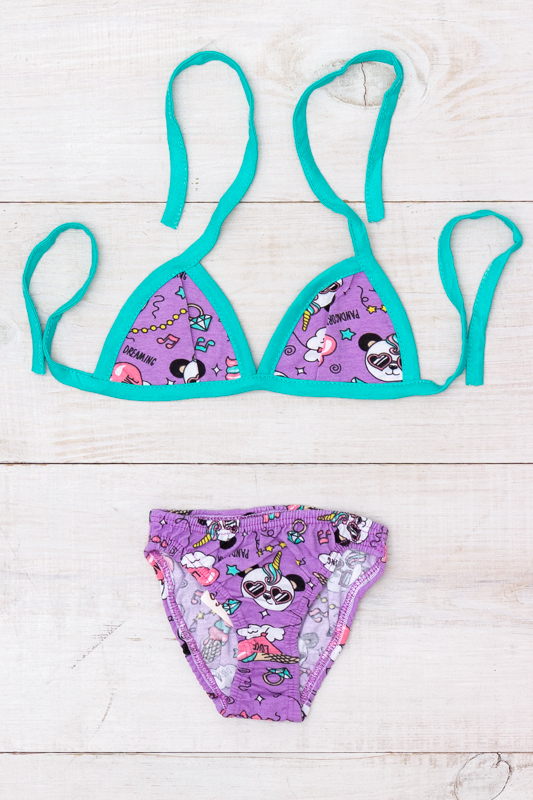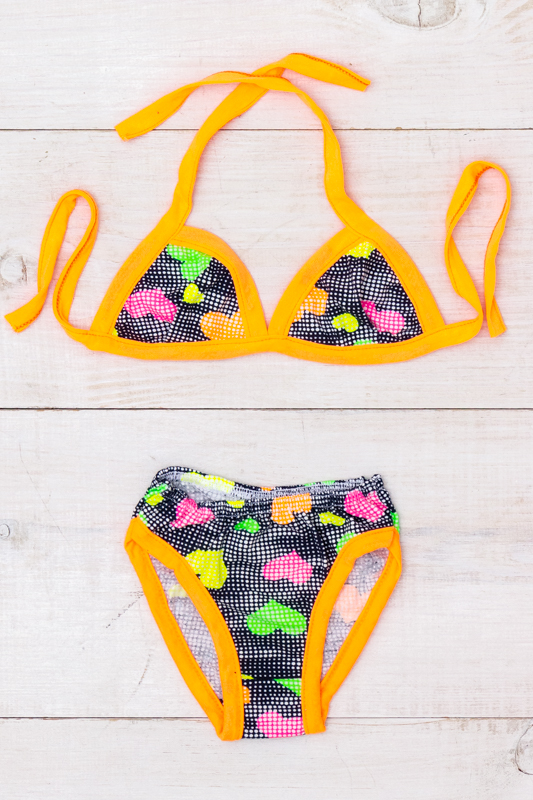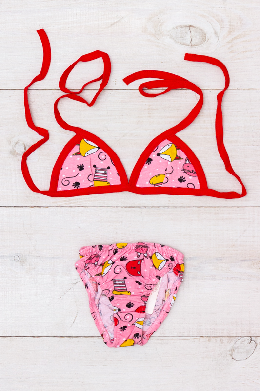 Ефектний купальник для дівчаток з яскравої набивної фулікри. Ліф-шторка без поролону, на зав'язках. Всидіти на піску не зможе жодна дитина - плавати і грати в такій моделі дуже зручно.