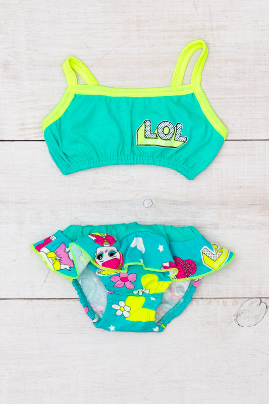 Купальник має зручний роздільний крій, що не обмежує рухів і дозволяє дитині активно гратися, плавати, стрибати у воду та почуватися впевнено. М’які шви не натирають шкіру, а резинки на талії та бретелях надійно тримають виріб на місці. Це ідеальний варіант для пляжного відпочинку, басейну або дитячого табору.