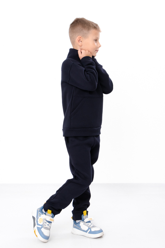 Новий стильний дитячий спортивний костюм з кофтою та джоггерами від ТМ “Трикотажний край”. Кофта вільного крою з карманом кенгуру та коміром стійка дуже незвичайної форми, низ та рукави виробу на манжетах. Костюм виконаний з полотна трьох-нитки з начосом 80% бавовна, 20% поліестер. Він теплий, м'який, дуже приємний на дотик. Підійде на прохолодну пору року - чудово зігріє взимку та восени. Костюм відмінно підходить як для худеньких, так і для середніх дітей. Джоггери з боковими кишенями, по низу манжети, пояс на широкій резинці, для кращої фіксації в пояс вставлений шнурок. Модель відмінно підходить для повсякденного носіння, заняттям спортом, для прогулянок на природі. Ідуть розмір у розмір. Можете взяти в розмір більше для ефекту оверсайз.