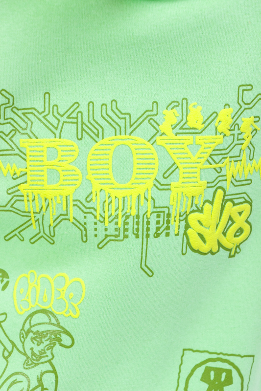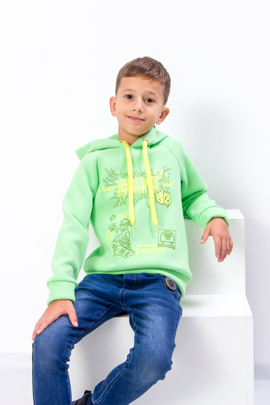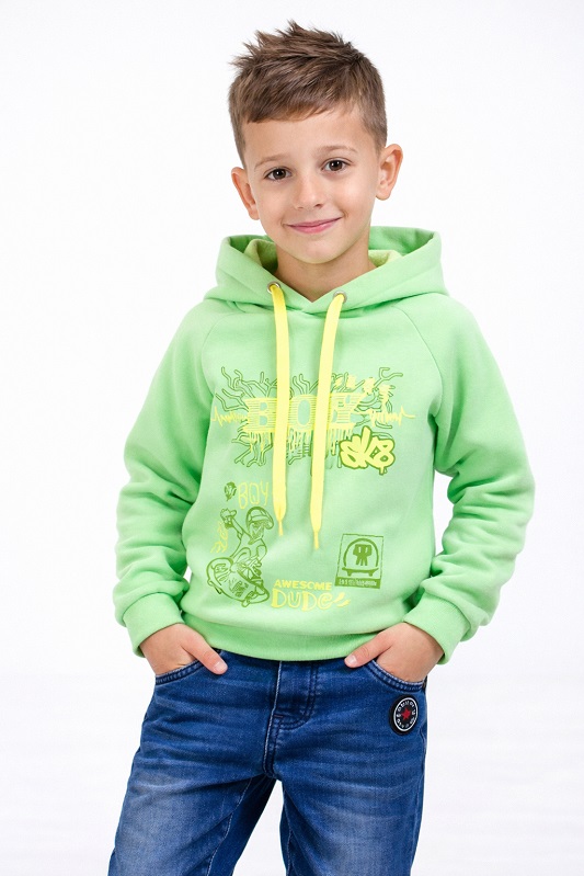 Вільне трикотажне худі обов'язково сподобається маленьким модникам, що люблять одяг у стилі oversize. Кофта з довгими рукавами, великим капюшоном має неймовірно стильний зовнішній вигляд і забезпечить дітям належний комфорт. Щільна тканина на основі бавовни (футер з начосом), з якої виготовлений модний світшот, дуже м'яка і тепла, не линяє і не розтягується навіть при активному повсякденному носінні. Дитині в такому милому худі буде дуже затишно як холодною зимою, так і навесні, і восени. Стильне бавовняне худі нейтрального кольору можна одягнути в зимовий, весняний і осінній період в школу, в садок або носити вдома. Трикотаж дозволяє тілу дихати і не подразнює шкіру. Скласти із цією об'ємною толстовкою модний костюм простіше простого. Вона поєднується із брюками, спортивними штанами та джинсами Під низ худи завжди можна одягнути футболку чи майку.
