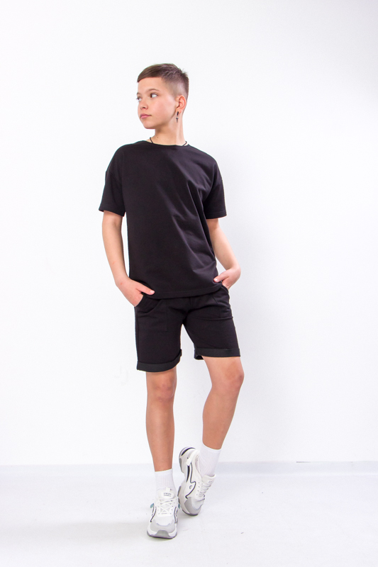 Шорти доповнені зручним еластичним поясом і мають кишені з боків — це практичне рішення для зберігання дрібниць чи просто зручного розміщення рук. Вони не сковують рухів, комфортно сидять на фігурі та підходять для будь-якої активності. Такий комплект стане улюбленим варіантом у гардеробі підлітка — зручний, міцний і стильний для кожного дня.