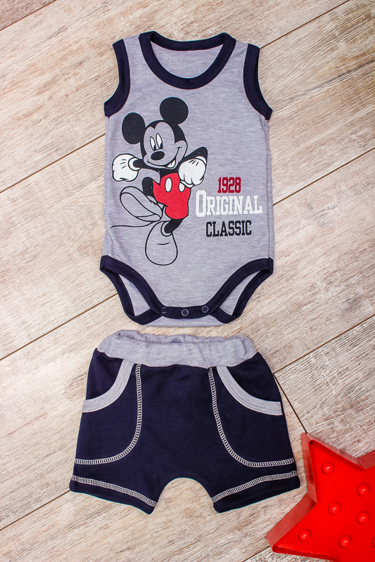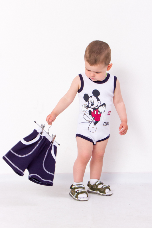 Майстри бренду «Трикотажний Край» своєю продукцією сприяють тому, що турботливі батьки могли наповнити гардероб малюка максимально різноманітними, нестандартними і дуже зручними речами. В даний комплект входить оригінальна боді-майка із застібкою між ніжок і веселим принтом, а також не менш симпатичні шорти з парою містких кишень. Обидві моделі призначені для носіння на свіжому повітрі в літню пору. Якість полотна бездоганна, бавовна відрізняється своїми натуральністю, приємленністю і хорошою стійкістю до зносу. Обидві речі м'які, бавовняні, повітропроникні і гігроскопічні. Комплектом будуть задоволені і малюк, і мама. Костюмчик дуже гарний. Синочок в ньому буде відчувати себе комфортно.