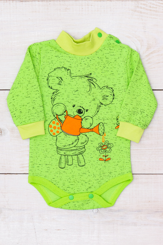 Яскравий ясельний боді з довгим рукавом. Пошитий з набивного начосу (натуральне полотно). Між ніжок і на плечі застібається на кнопки. Декорований барвистим накатом. Прати при температурі не більше 30 ° C, дає усадку на 1-2 см. Продукція бренду відрізняється європейськими стандартами якості і відшивається тільки з сертифікованої сировини.