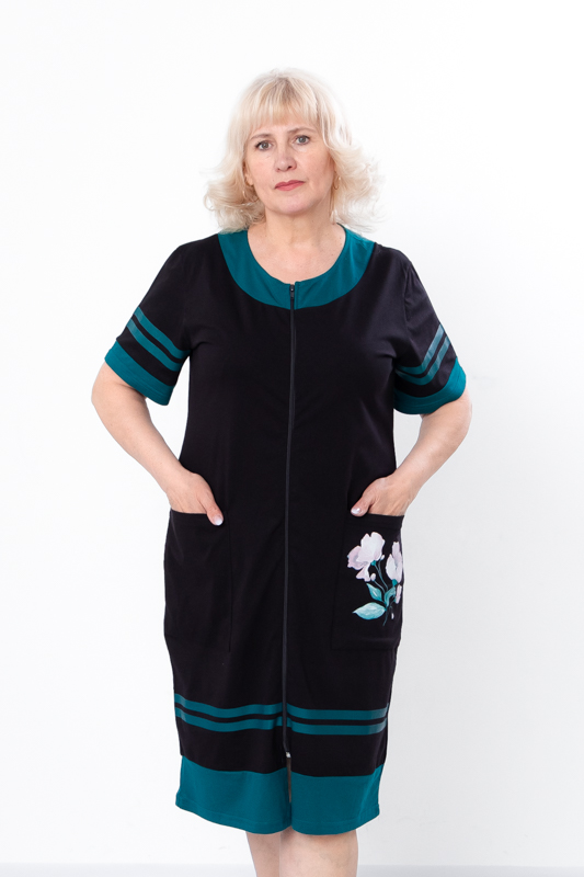 Стильний жіночий халат з короткими рукавами від ТМ «Трикотажний Край» виконаний з м'якого, приємного на дотик високоякісного полотна кулир (бавовна 100%). Низ виробу, рукава і кишені декоровані яскравими принтами. Зображення наноситься методом шовкотрафаретного друку. Для нанесення малюнка, ми використовуємо високоякісні матеріали, які сприяють тому, щоб зображення не відривалося, не тріскалося, щоб не вигорало і не змінювало колір навіть через 50-60 прань! Довжина халата до колін, застібається модель на блискавку, з боків розташовані накладні кишені. Халат дуже зручний і комфортний, ідеальний варіант для будинку, а також чудовий подарунок для коханої і близької людини.