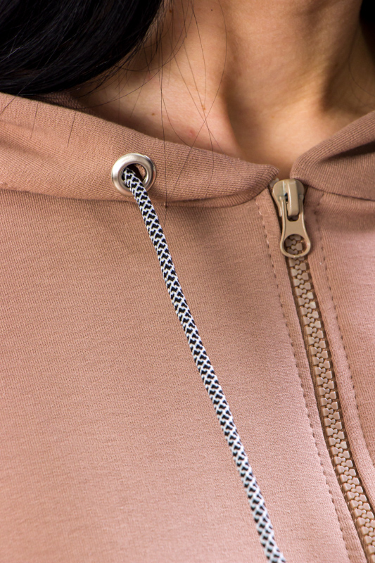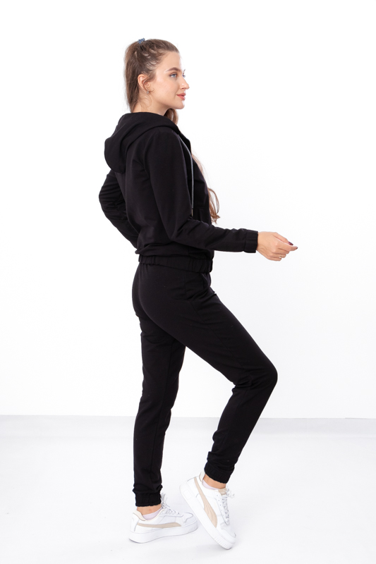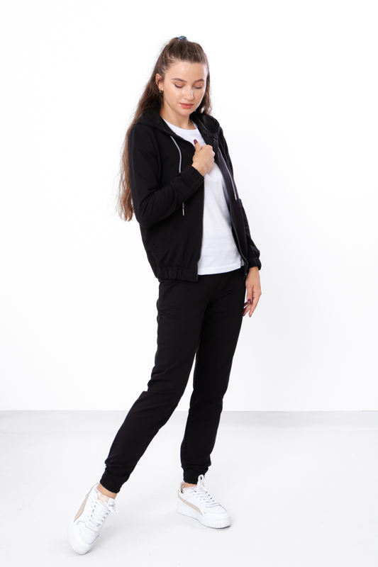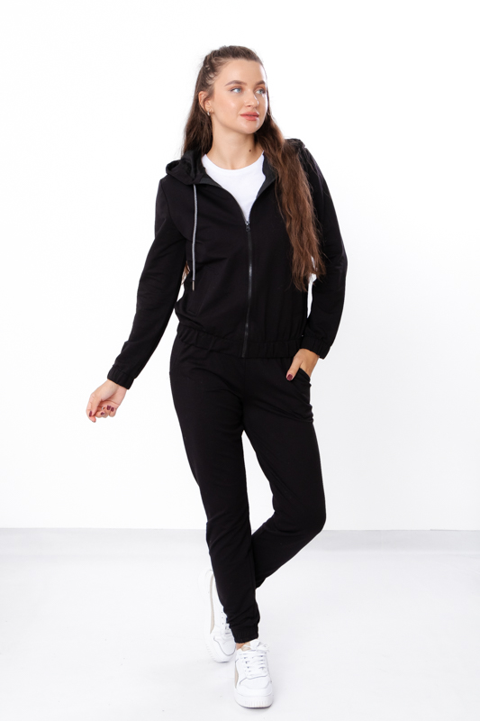 Костюм складається з кофти на блискавці та штанів. Кофта з капюшоном, на рукавах та на штанах манжети на резинці забезпечують комфортну посадку. Штани на широкій резинці, по бокам кишені.Такий костюм чудово підходить для повсякденного носіння та активних прогулянок. Костюм пошитий з однотонної двонитки. Полотно гарної якості. Тому, при правильному догляді, його можна буде носити не один сезон. Може давати усадку після прання.
