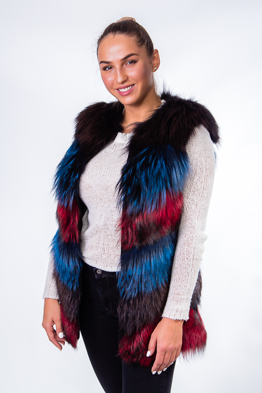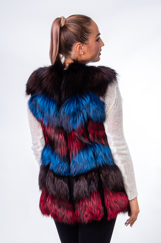 Тепла жилетка з хутра чорнобурки вільного крою довжиною нижче лінії стегна. Виріб без рукава. Для зручності передбачені прорізні кишені. Вдалий вибір для стильного образу.