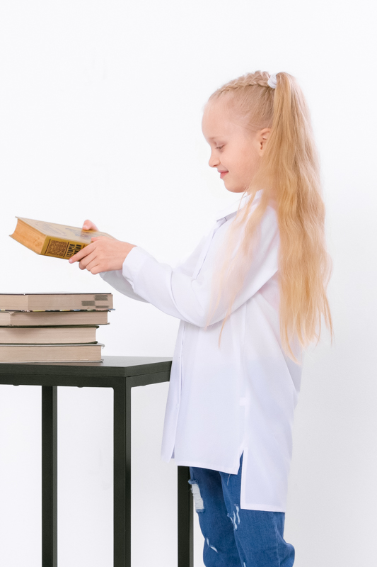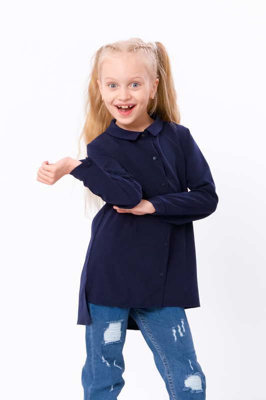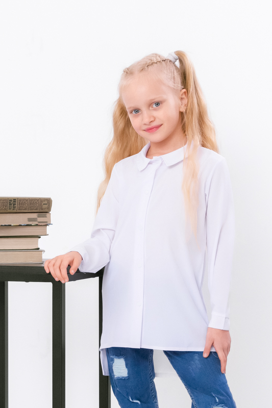 Шкільна блуза ідеально підходить для стильних і зручних шкільних образів. Вона виготовлена з високоякісного софту, який поєднує в собі м'якість бавовни з практичністю поліестеру. Модель з подовженою спинкою, сорочковий комір. Застібається на кнопки по всій довжині і на рукавах.