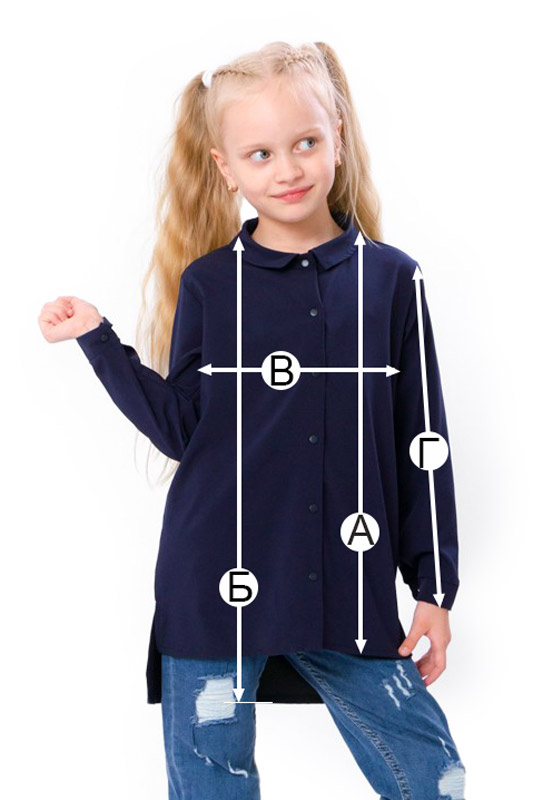 А - Довжина блузи від плеча по передній частині (+/-2см)
