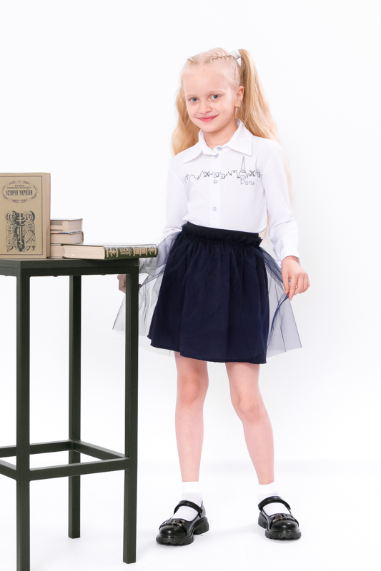 Сукня для дівчинки пошита з софту в поєднанні з фатином. Модель довжиною до коліна, з високою посадкою, пояс на резинці. Родзинкою даної моделі є вставка з фатину, яка додає спідниці святкового вигляду. Така річ чудово підійде для школи або на святкові заходи. Її легко можна поєднувати з футболками, блузами або сорочками. Полотно приємнее до тіла, легке.