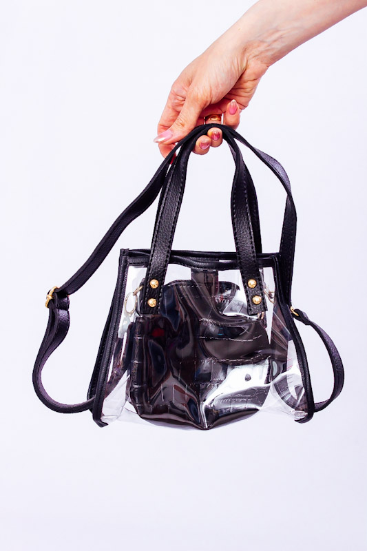 Сумка повністю прозора з маленькою космітичкою у тон або яскравою