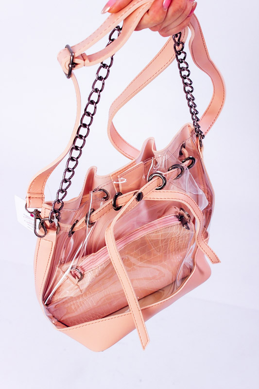 До комплекту входить космітичка та сумка. Сумка прозора на половину