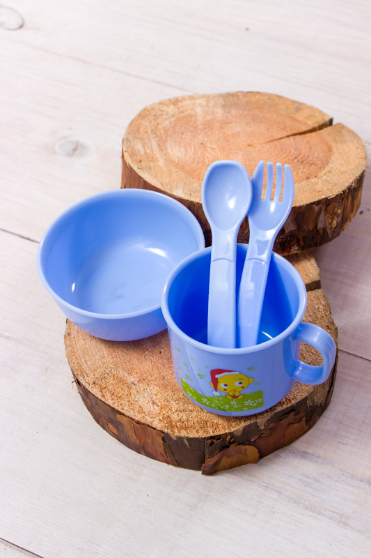 Набір пластмасового посуду (тарілка, чашка, ложка, виделка).