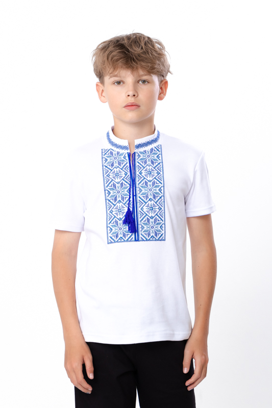 Класичний вільний крій забезпечує зручність і свободу рухів, не сковує активність дитини під час ігор чи святкових подій. Короткий рукав додає легкості й робить вишиванку комфортною навіть у спекотні дні. Горловина оздоблена традиційною планкою з декоративними шнурками , що надає виробу автентичного вигляду.