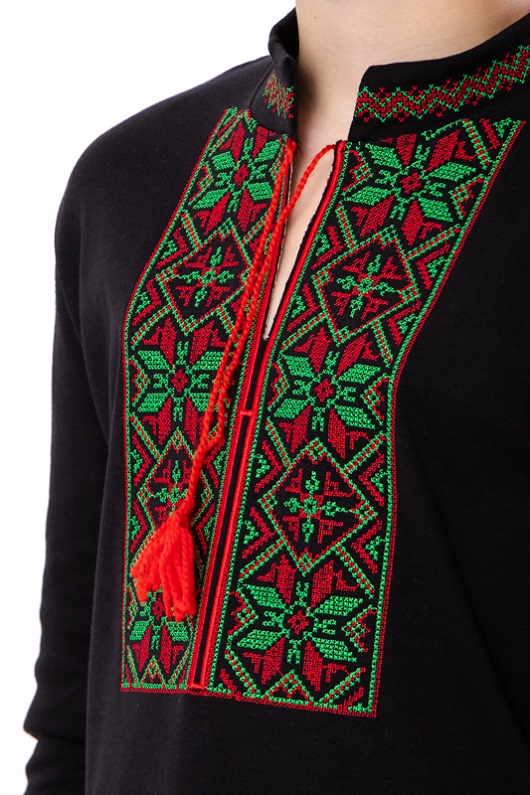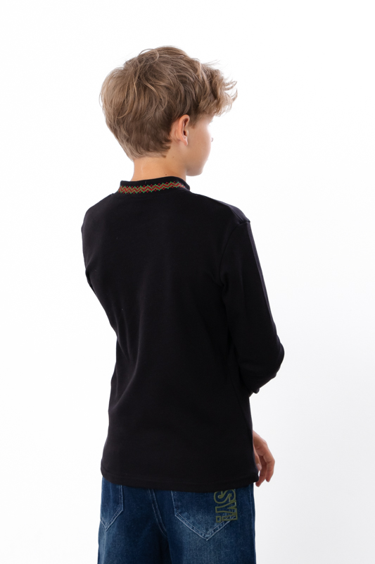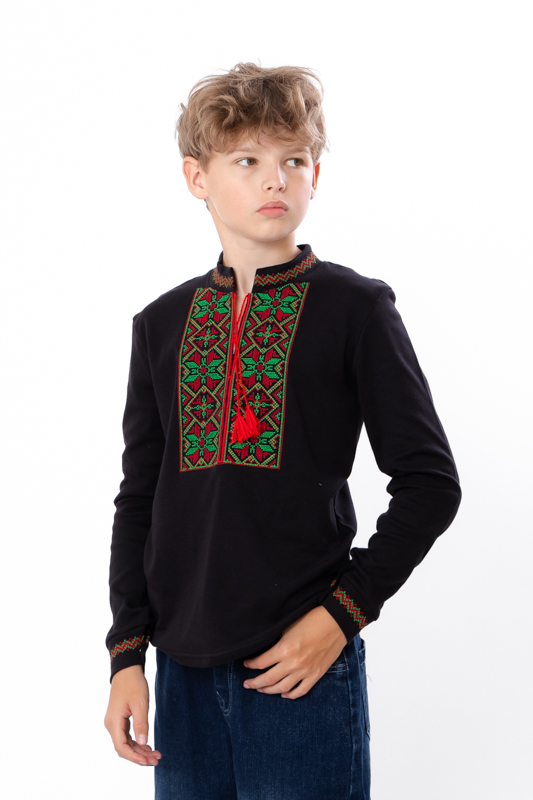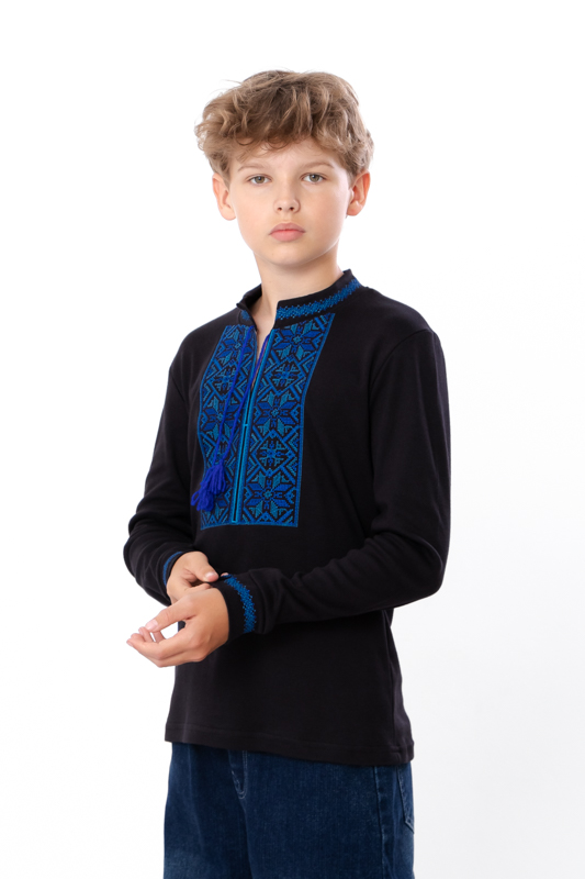 Класична дитяча вишиванка з довгими рукавами – ідеальний вибір для будь-якої пори року.Традиційна вишиванка для хлопчика з геометричними орнаментами – символ мужності та енергії. Виконана з якісної тканини, що дозволяє шкірі дихати. Зручний фасон не сковує рухів, а акуратна вишивка додає особливого національного колориту. Краї коміра-стійки з'єднуються декоративними шнурками-зав'язками з довгими китичками.