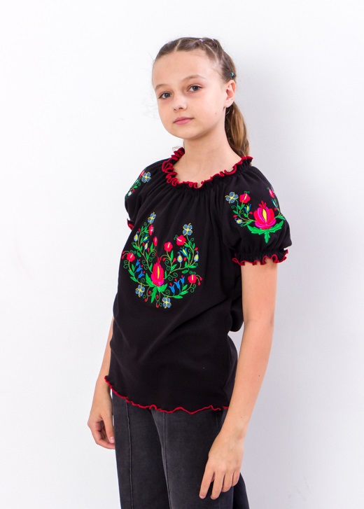 Ця вишиванка чудово підійде як для урочистих подій, свят у школі чи садочку, так і для повсякденного образу. Її легко поєднувати з джинсами, шортами чи спідницями, створюючи стильний і водночас національно забарвлений образ. Це не просто одяг — це частинка української душі, втілена у легкій, зручній і красивій формі.