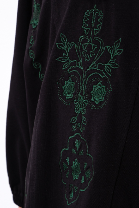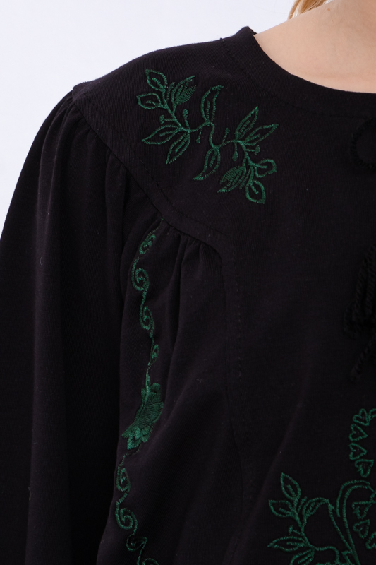 Вишиванка має елегантний рукав довжиною нижче ліктя — це практичне рішення для міжсезоння, коли повний довгий рукав ще не потрібен, але й короткий не забезпечує достатнього тепла. Такий фасон виглядає витончено та зручно водночас. Вишивка виконана в традиційних українських мотивах, які символізують красу, гармонію та національну ідентичність.