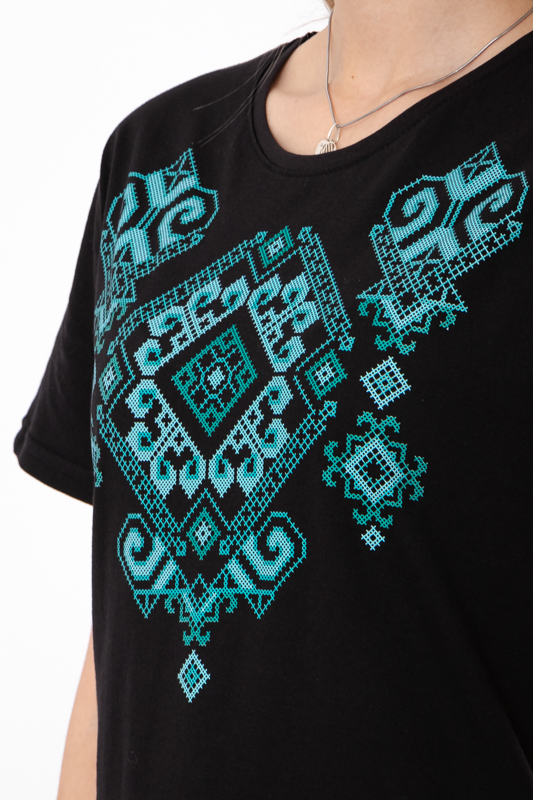 Особливу увагу привертає орнамент — стилізований візерунок, натхненний українськими традиційними мотивами. Такий елемент не тільки прикрашає футболку, але й символізує повагу до національних цінностей та культури.
