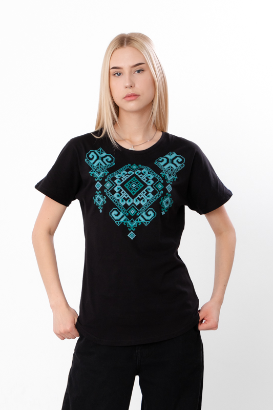 Жіноча футболка з орнаментом із куліру — це поєднання зручності, стилю та української традиційної символіки в сучасному виконанні. Виготовлена з натурального однотонного куліру, ця модель є ідеальним вибором для повсякденного носіння в теплу пору року. Кулір — це легке, дихаюче трикотажне полотно з гладкою поверхнею, яке добре вбирає вологу, не парить і приємно прилягає до тіла.