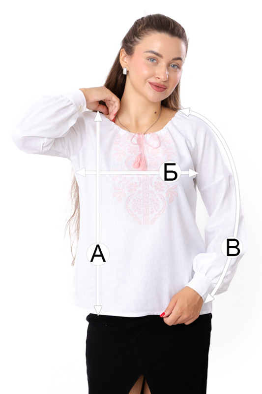 | А - Довжина вишиванки від плеча, +/-2см | 61 | 63 | 63 | 63 | 63 | 64 | 65 | 65 |