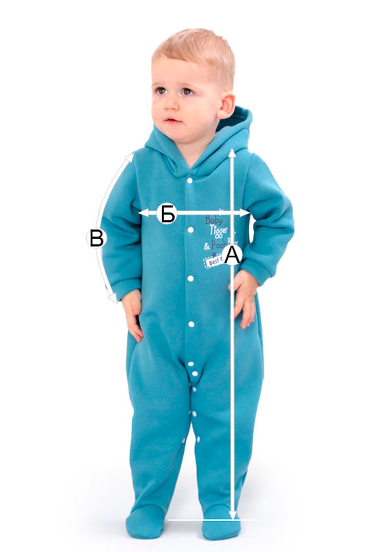 | А - Довжина комбінезону від плеча (+/-2см) | 57 | 61 | 66 | 71 |