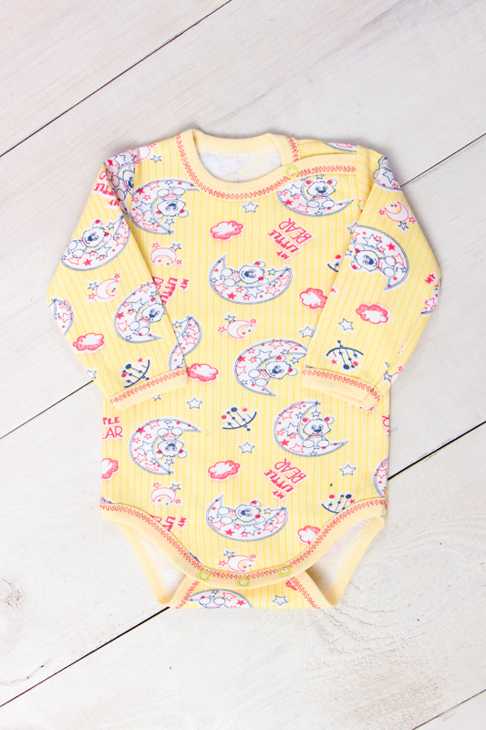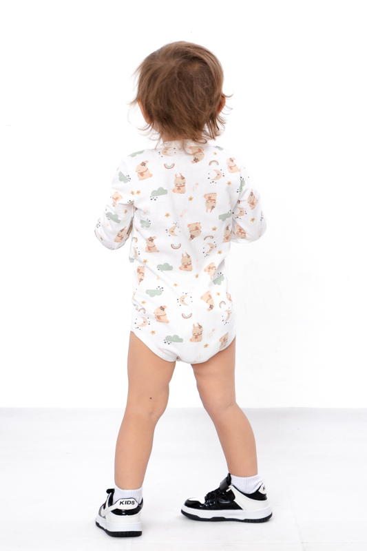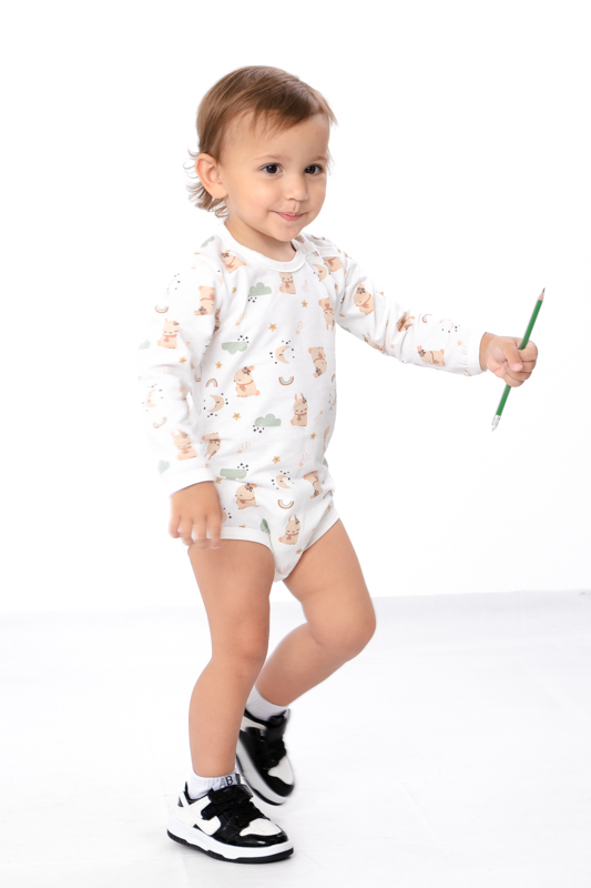 Комфортний ясельний боді з довгим рукавом з набивного начосу (натуральне полотно). Між ніжок застібається на 3 кнопки, для більш зручної зміни памперса. Прати при температурі не більше 30 ° C, дає усадку на 1-2 см. Для зручності на одному плечі в боді вставлена одна кнопка, за допомогою якої вам буде легше зняти його з дитини. Продукція бренду відрізняється європейськими стандартами якості і відшивається тільки з сертифікованої сировини.