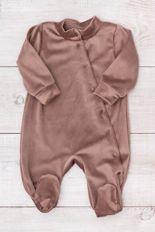 Ніжний ясельний комбінезон із велюру-плюшу створений спеціально для маленьких дівчаток. М’який рожевий відтінок надає виробу делікатного, охайного вигляду, а тепла та приємна тканина робить його незамінним у щоденному догляді за немовлям.