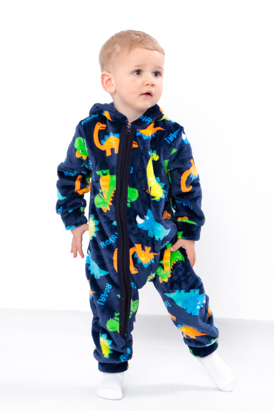 Тепло, комфорт та затишок об'єднав у собі представлений комбінезон. Виріб застібається на блискавку, яка розташована навскіс від самого верху і до низу однієї ніжки. Края рукавів та ніжок оброблені манжетами, а також має капюшон.