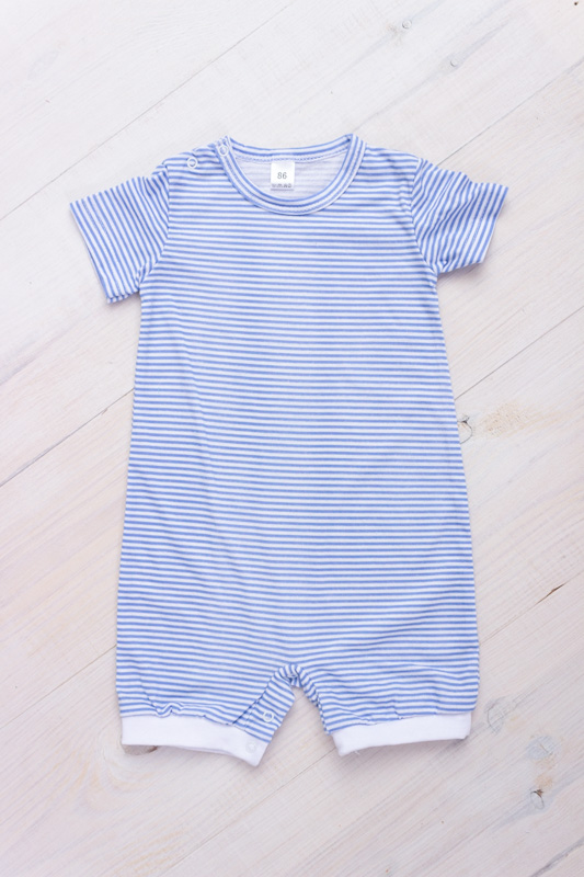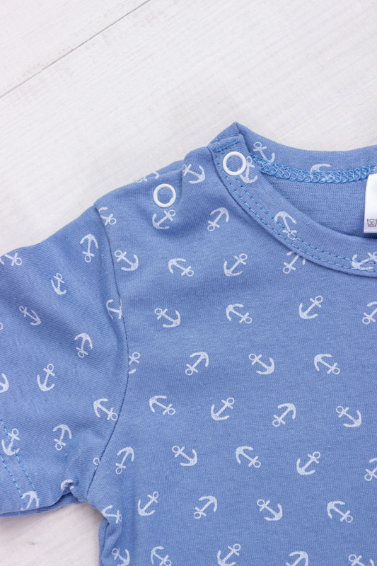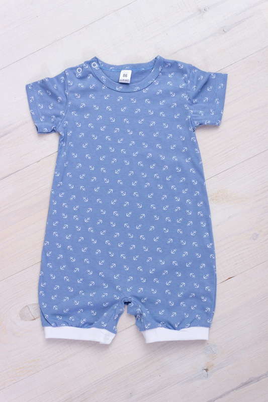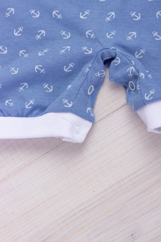 Дитячий пісочник має зручний крій із короткими рукавами та штанинами, що не сковують рухів, дозволяючи хлопчику вільно повзати, гратися чи спати. Застібки-кнопки розташовані у нижній частині моделі — це значно полегшує зміну підгузка або переодягання без необхідності повністю роздягати малюка.
