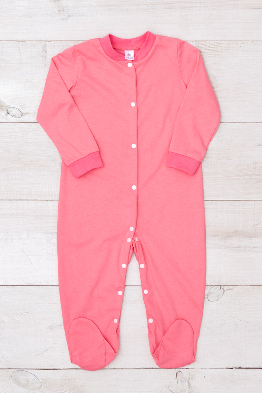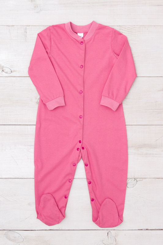 Практичний, зручний ясельний комбінезон для дівчаток з довгим рукавом, виконаний з однотонного куліра. Виріб по всій довжині застібається на кнопки, що дуже зручно при переодяганні малюка. Модель з закритими ніжками і відкритими ручками. Кулір вважається найтоншим трикотажним полотном, не викликає алергії.