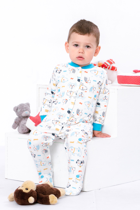 Матеріалом для виробу обрано начіс — м’яке, тепле трикотажне полотно з бавовни, з внутрішньою ворсистою поверхнею. Така тканина ідеально підходить для осінньо-зимового сезону: вона приємна до тіла, добре утримує тепло та дозволяє шкірі дихати, запобігаючи перегріванню. Принтований дизайн додає яскравості образу малюка, а веселі дитячі мотиви створюють позитивний настрій.