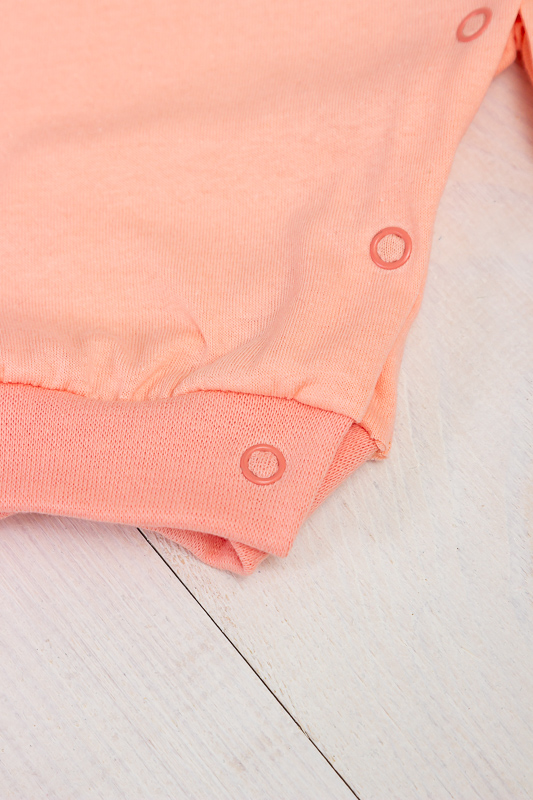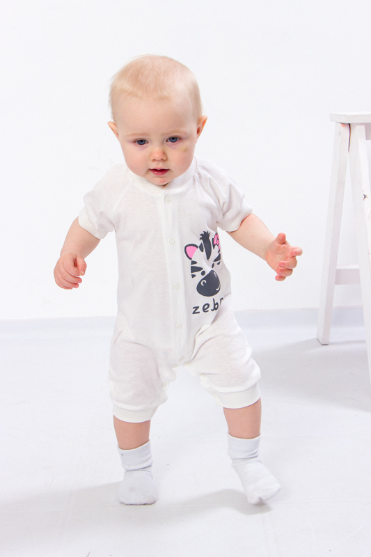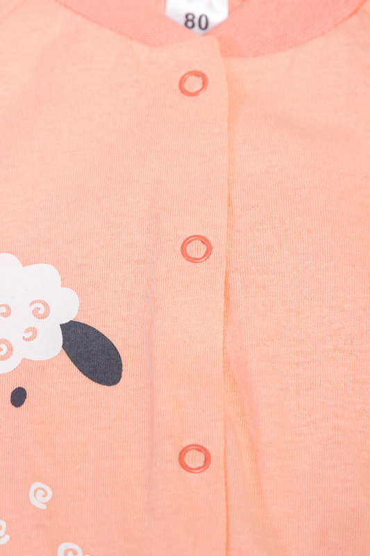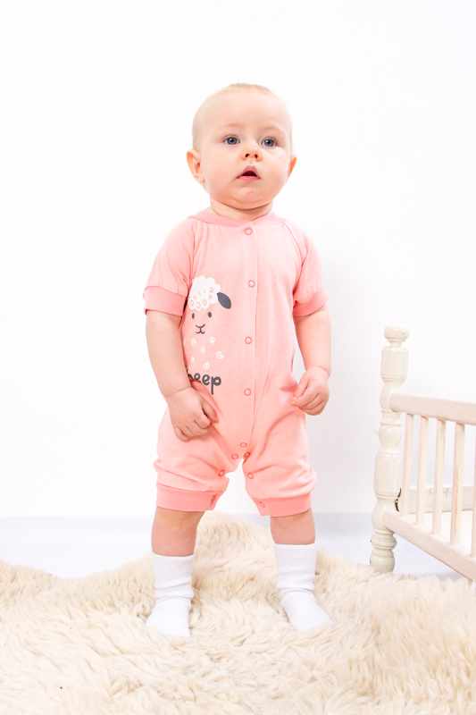Модель має короткі рукава та штанини, які завершуються акуратними манжетами. Це забезпечує додатковий захист від протягів і гарантує, що пісочник не буде задиратися під час рухів малюка. Застібка на кнопках по всій довжині — від горловини до низу — дозволяє швидко й без зусиль переодягнути дитину або замінити підгузок. Це особливо зручно під час нічного сну або в дорозі.