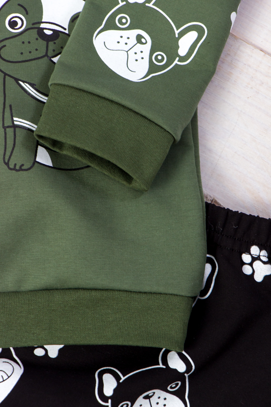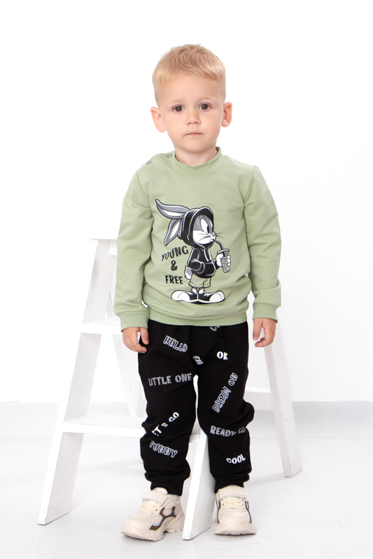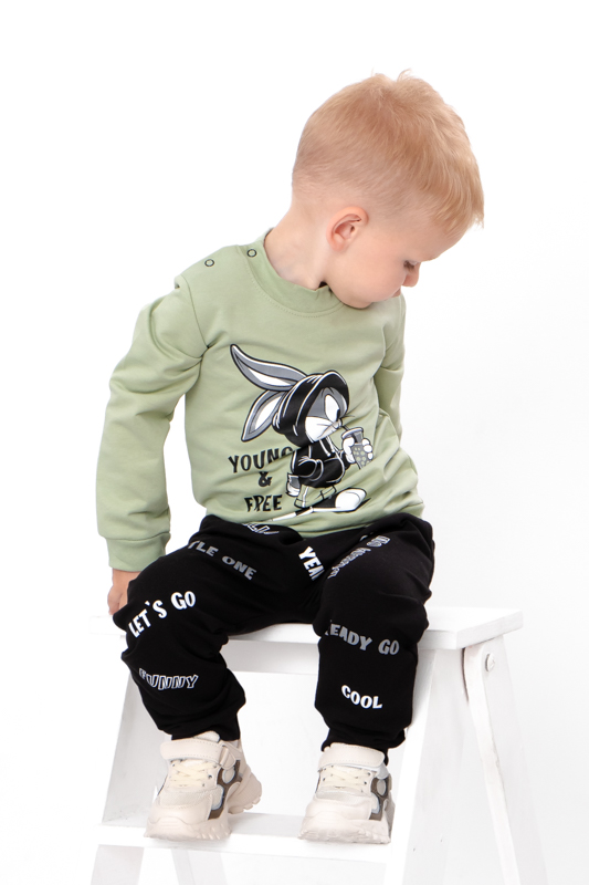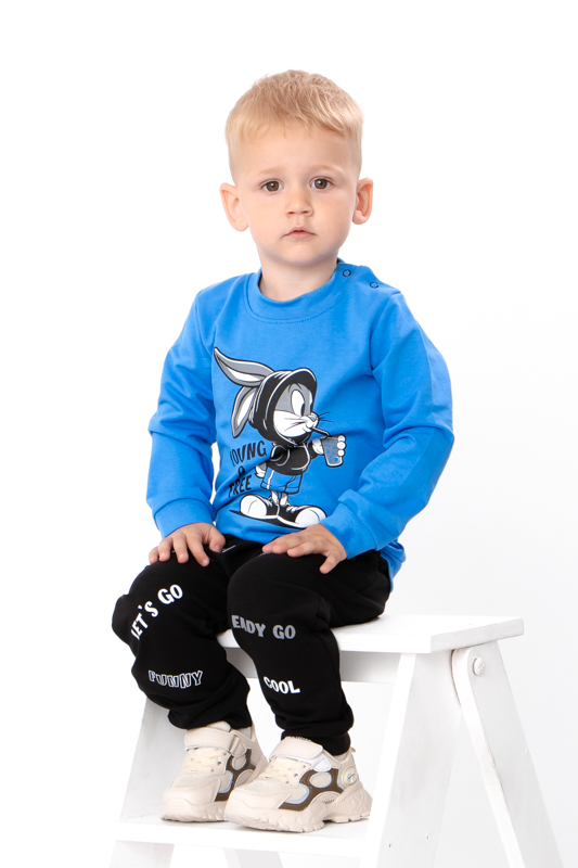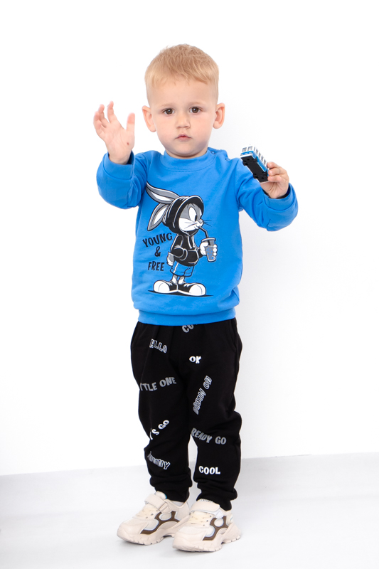 Штани комплекту мають стильний принт, що доповнює образ, додаючи кольору та настрою. Гумка на поясі дозволяє зручно регулювати посадку, не викликаючи дискомфорту, а практичний матеріал забезпечує свободу рухів під час ігор і активних занять. Крій штанів є класичним і універсальним, що дозволяє дітям рухатись без обмежень, а також гарантує комфорт і зручність протягом усього дня.