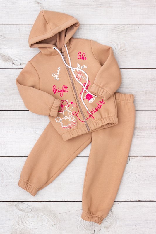 Ясельний комплект ТМ ‘’Трикотажний край’’ виготовлений з якісного футера (тринитка з начосом). Кофта на замку та штанці - ідеальна комбінація дитячого комплекту! Кофточка з принтом смайлика, капюшон оснащений декоративним шнурком, край кофтинки,рукавів та штанців оброблені резинкою. Малюку буде комфортно і дуже затишно в такому комплекті!
