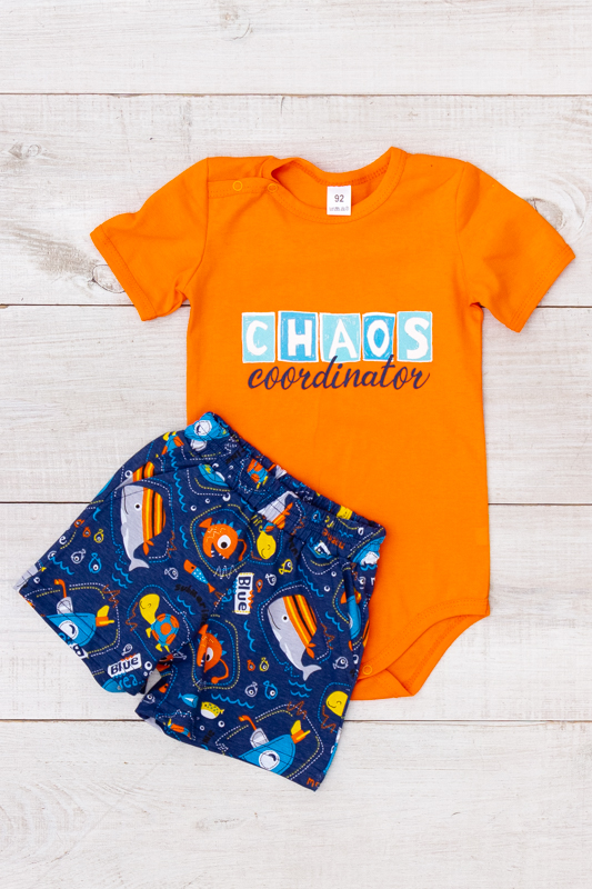 Практичний та милий комплект для хлопчика складається з боді з коротким рукавом та шортів. Він ідеально підійде як для щоденного носіння вдома, так і для прогулянок у теплу пору року.