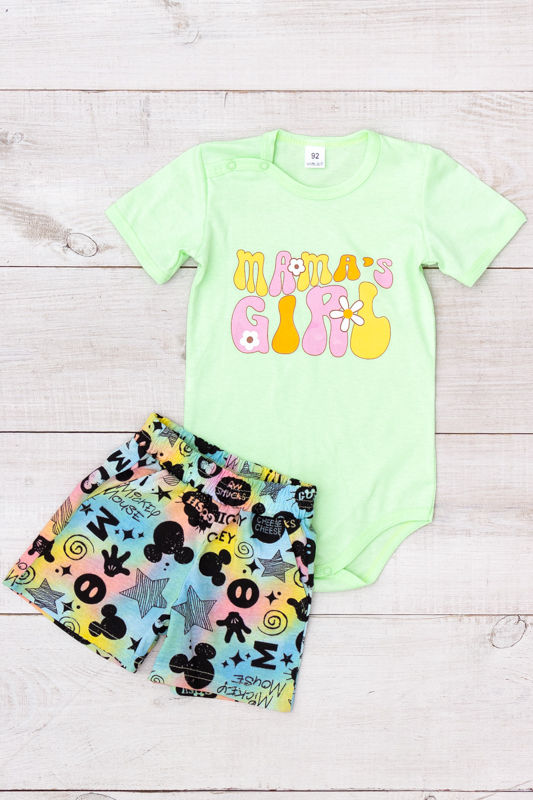 Практичний та милий комплект для дівчинкискладається з боді з коротким рукавом та шортів. Він ідеально підійде як для щоденного носіння вдома, так і для прогулянок у теплу пору року.