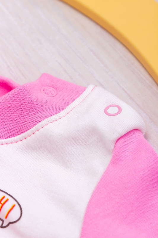 Кофта має зручну застібку на кнопках, розташовану на плечі, що значно полегшує процес одягання та роздягання — особливо коли йдеться про зовсім маленьку дитину. Тканина м’яка, приємна до тіла, не викликає подразнень, а крій не обмежує рухів. Принт на грудях додає виробу ніжного і грайливого вигляду, роблячи його ще більш привабливим для малечі та батьків.