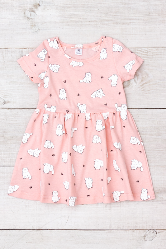 Сукня виготовлена з легкого та приємного до тіла куліру — натуральної бавовняної тканини, яка чудово пропускає повітря, не викликає подразнень і підходить навіть для найчутливішої шкіри. М’яка структура матеріалу забезпечує повний комфорт дитини протягом дня, а принтоване полотно додає виробу яскравості й грайливості.