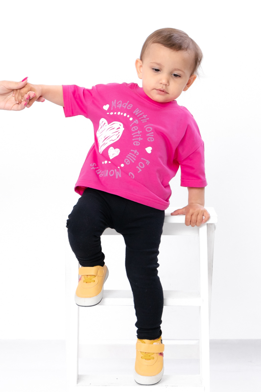 Футболка ясельна для дівчинки з принтом з однотонного куліру — це зручна, м’яка та практична модель для найменших модниць. Вона ідеально підходить для щоденного носіння вдома, у дитячому садочку або на прогулянках у теплу пору року.