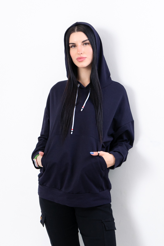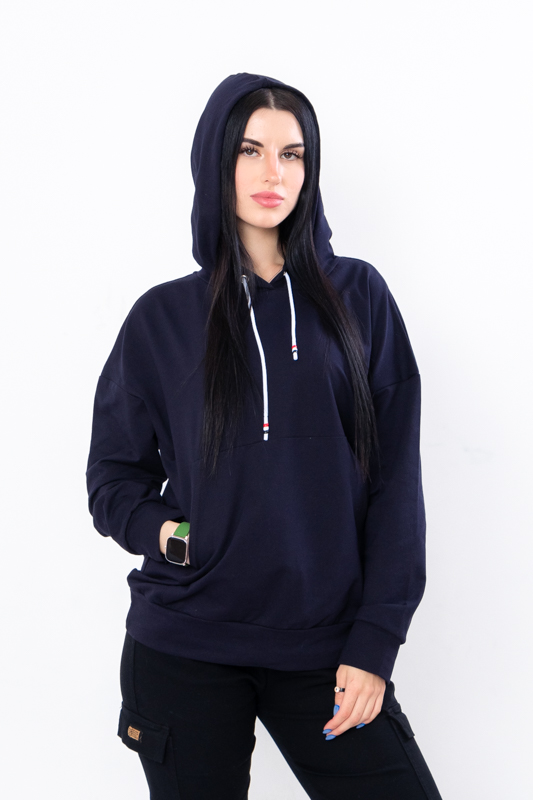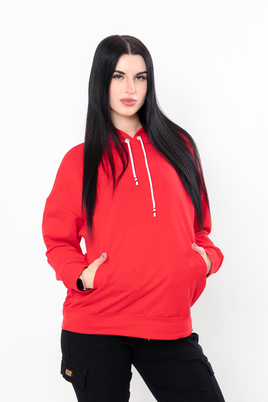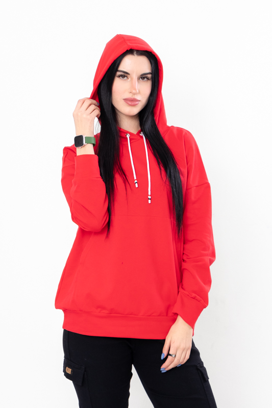 Однотонне забарвлення додає універсальності: худі легко поєднується з джинсами, спортивними або трикотажними штанами, лосинами, а також може стати стильною парою до спідниці. Така модель — ідеальна база для створення образів у стилі кежуал, спорт-шик або мінімалізм. Вона дає змогу експериментувати з аксесуарами та взуттям, створюючи щоразу нові поєднання.