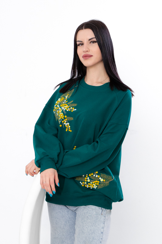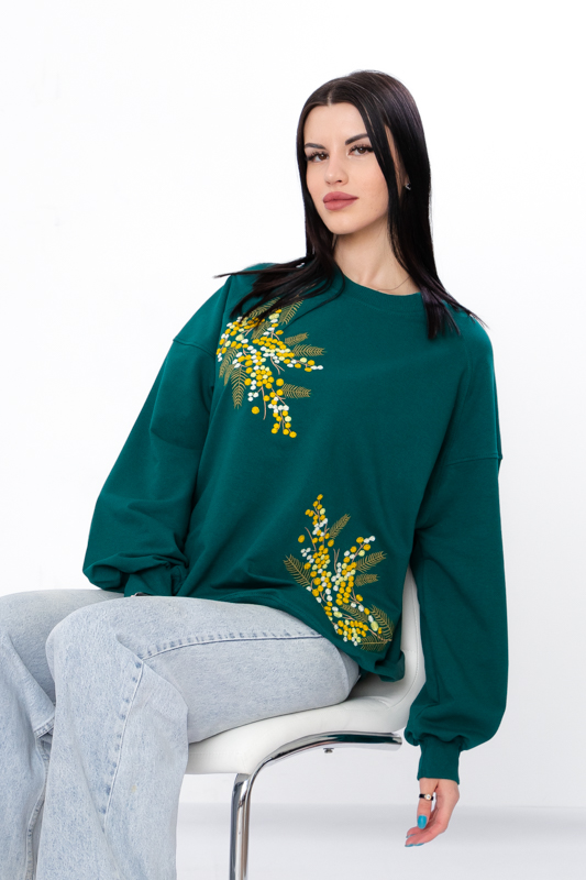Особливістю моделі є актуальний принт, який додає динаміки та індивідуальності. Саме цей декоративний елемент перетворює базову річ на акцентну — таку, що не потребує додаткових яскравих деталей. Джемпер легко комбінується з джинсами, брюками, спідницями або спортивними штанами, тому стане універсальним варіантом як для прогулянок містом, так і для неформальних зустрічей чи затишного відпочинку вдома.