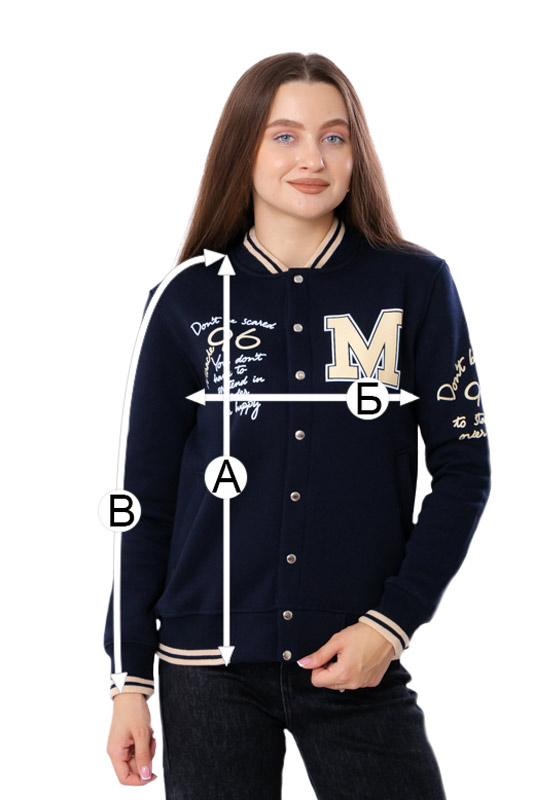 | В - Довжина рукава від горловини, +/-1см | 70 | 72 | 73 | 74 | 75 | 76 |