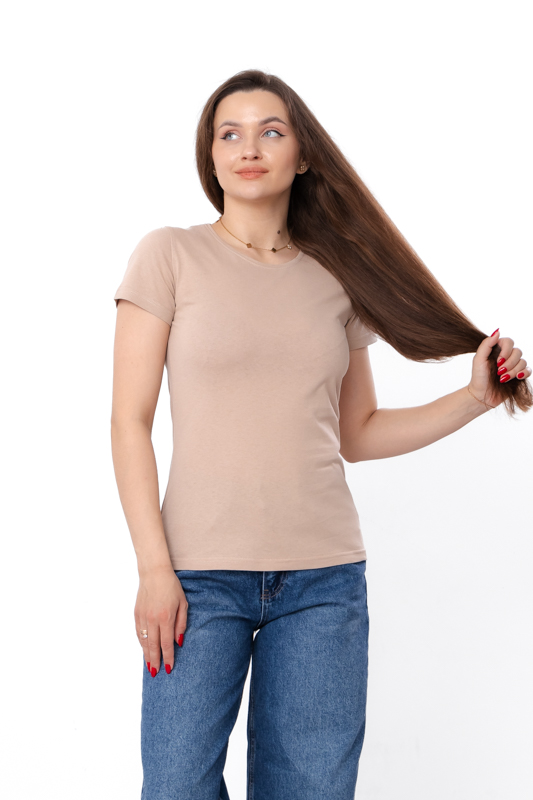 Крій виробу продуманий таким чином, щоб підкреслювати природні лінії силуету, не створюючи зайвого об’єму та не обмежуючи рухів. Футболка добре сідає по фігурі, виглядає акуратно та гармонійно, що робить її чудовим варіантом як для щоденного носіння, так і для створення більш продуманих образів. Вона легко комбінується з різними елементами гардероба — від джинсів і шортів до спідниць чи класичних штанів, дозволяючи створювати як розслаблені, так і більш стримані стилізації.