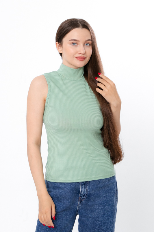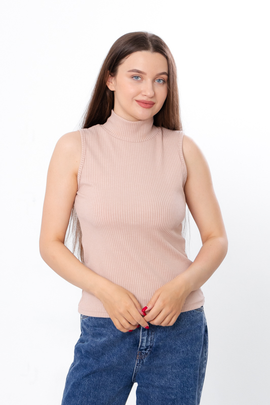 Майка-американка жіноча виготовлена з трикотажного легкого полотна – рубчик-мустанг. Майка має комір-стійку. Вільний та зручний крій забезпечує комфорт, особливо в теплу погоду.