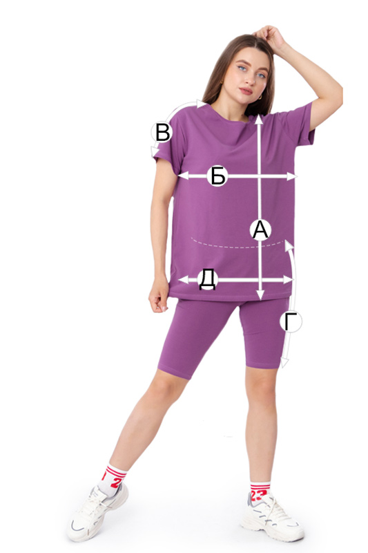 Базовий комплект для жінок зі трикотажного полотна - фулікра. Модель складається з подовженої футболки oversize та велосипедок. Футболка має округлий виріз та спущену лінію рукава. Еластичне, тонке полотно відмінно підходить для спекотного літа. Доповнити комплект можна бейсболкою та спортивними босоніжками або кедами.