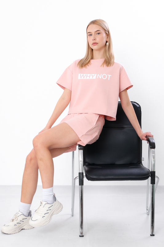 Футболка з коротким рукавом має вільний укорочений фасон, який ідеально підходить для спекотної погоди. Вона не лише дарує відчуття прохолоди, а й стильно підкреслює фігуру, особливо в тандемі з шортами високої посадки. Особливу увагу привертає оригінальний принт — яскравий, сміливий або мінімалістичний — який додає образу індивідуальності та виразності. Така футболка чудово комбінується не лише з комплектом, а й з джинсами, легінсами або спідницями.