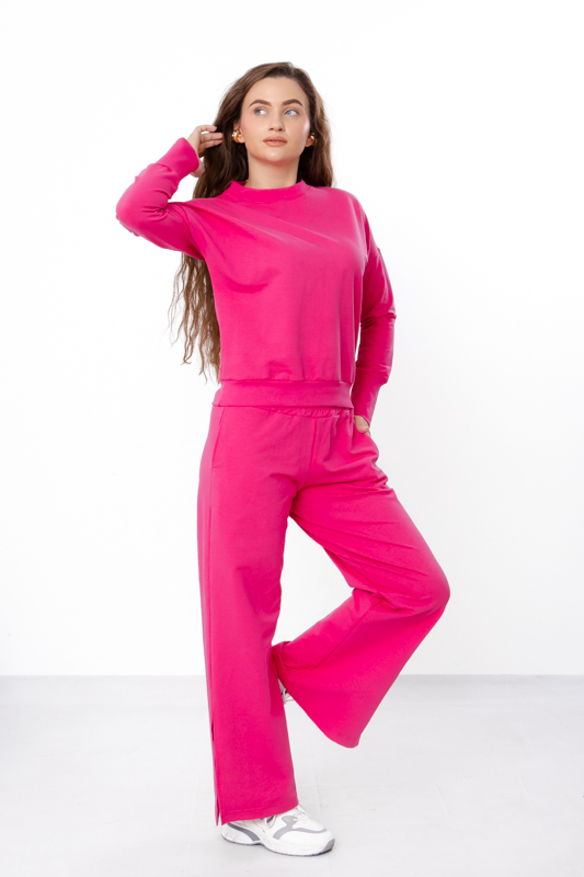 Вільний крій та якісний матеріал забезпечують максимальну свободу рухів. Костюм, який легко поєднує стиль і практичність! Комплект складається з джемпера та популярних штанів палаццо. Костюм можна доповнити кросівками або кедами. Підходить для повсякденного носіння, занять спортом або активних прогулянок. Полотно гарної якості. Тому, при правильному догляді, виріб можна буде носити не один сезон. Може давати усадку після прання.
