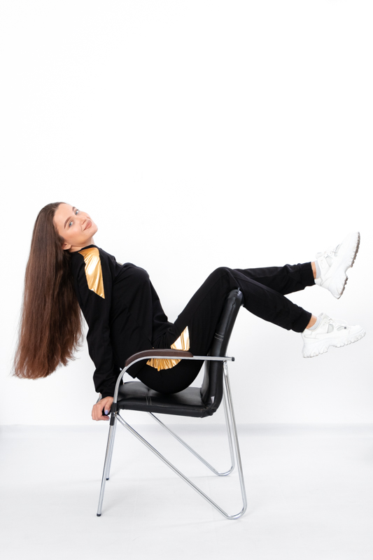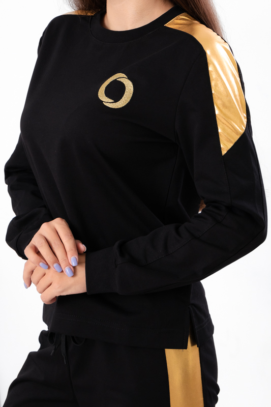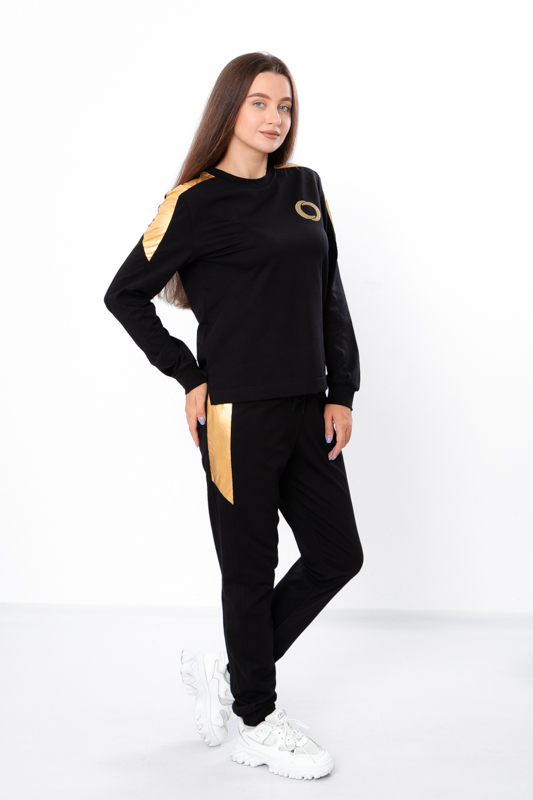 Головні особливості: Матеріал: якісний трикотаж. Дизайн: стильний чорний колір із золотими акцентами. Декор: вишивка з ексклюзивним логотипом. Зручність: м’які манжети, резинка на талії, комфортна посадка.
